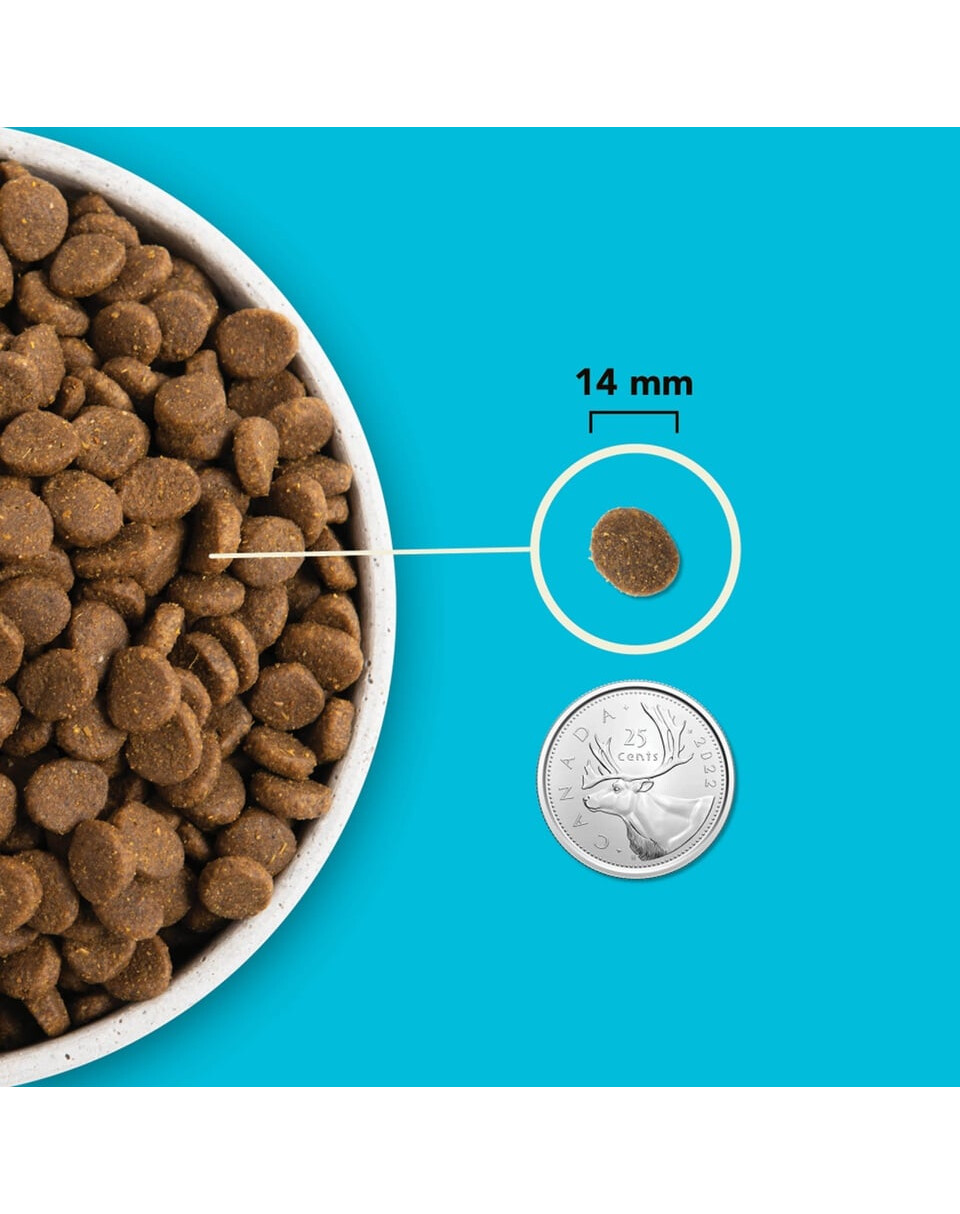 Färsk sill (14%), färska sardiner (12%), hälleflundra (8%), torkad sill (8%), torkad torsk (7%), torkad vit fisk (7%), ärtor, Linser, kikärter, gröna linser, laxolja (6%), färsk silvergädda (4%), färsk rockabborre (4%), spräckliga bönor, hela gula ärtor, solmogen alfalfa, solrosolja, Linser, brun tång, färsk pumpa, färsk butternutsquash, färsk palsternacka, färsk kål, spenat, färsk brun senap, färska morötter, Red Delicious-äpplen, färska Bartlett-päron, frystorkad torsk (0,1%), färska tranbär, färska blåbär, cikoriarot, gurkmeja, mjölktistel, kardborre, stor rot, lavendel, marshmallow, nypon.