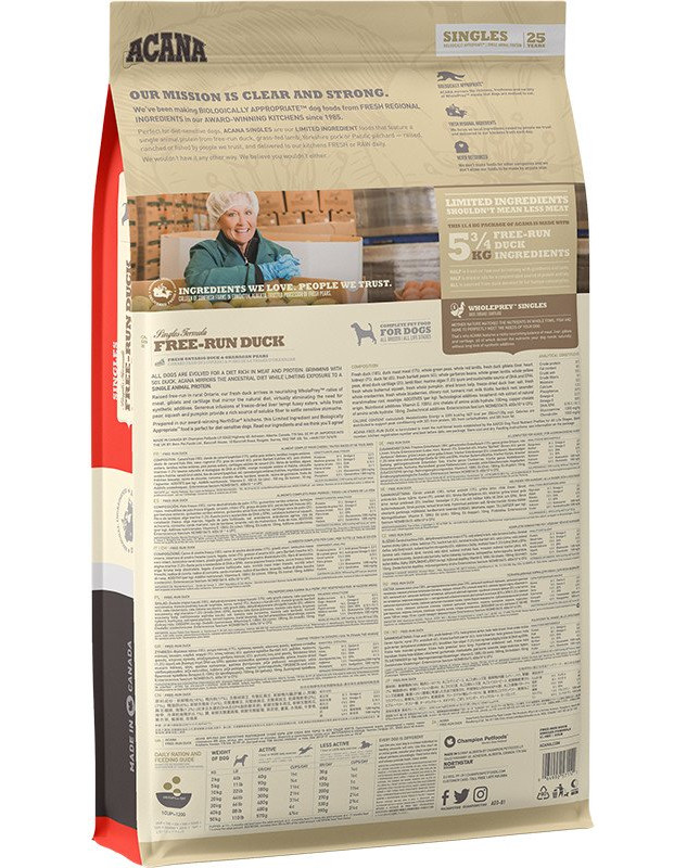 Komplett foder för hundar. ACANA Free-Run Duck är ett enproteinigt torrfoder bestående av 50% ankkött, ett enda lättsmält animaliskt protein som är perfekt för hundar av alla raser och livsstadier med foderöverkänslighet.