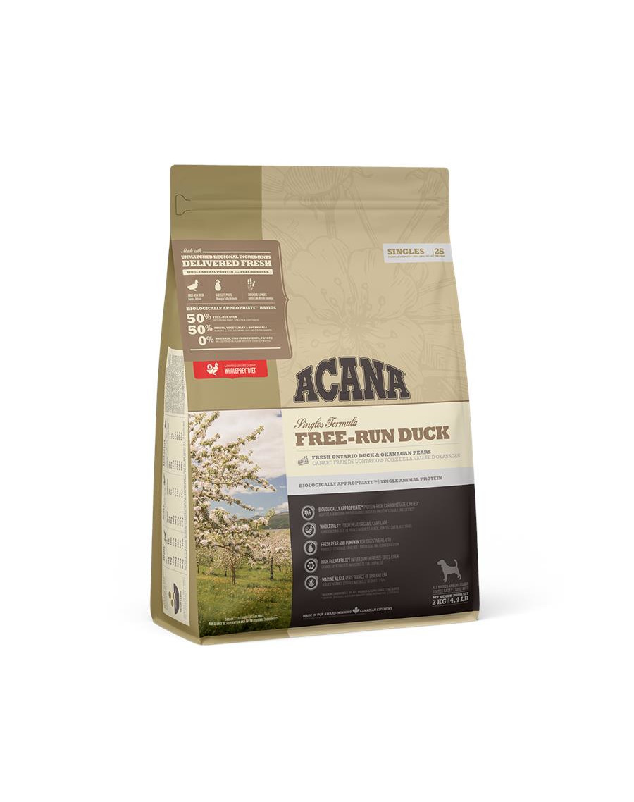 Komplett foder för hundar. ACANA Free-Run Duck är ett enproteinigt torrfoder bestående av 50% ankkött, ett enda lättsmält animaliskt protein som är perfekt för hundar av alla raser och livsstadier med foderöverkänslighet.