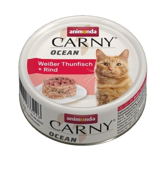 Animonda Carny Ocean är en mör tonfisk- eller laxfilé smaksatt med goda ingredienser, allt i en läcker gelé.