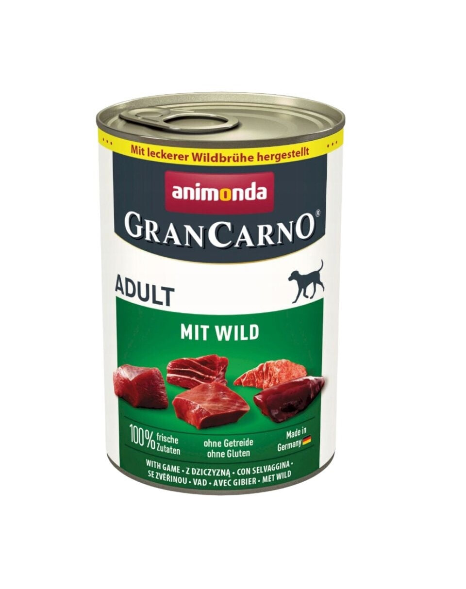Ingredienser: 53 % fläskkött (hjärta, lever, lungor, kött), 29 % viltbuljong, 15 % viltkött (kött), mineraler, safflorolja.