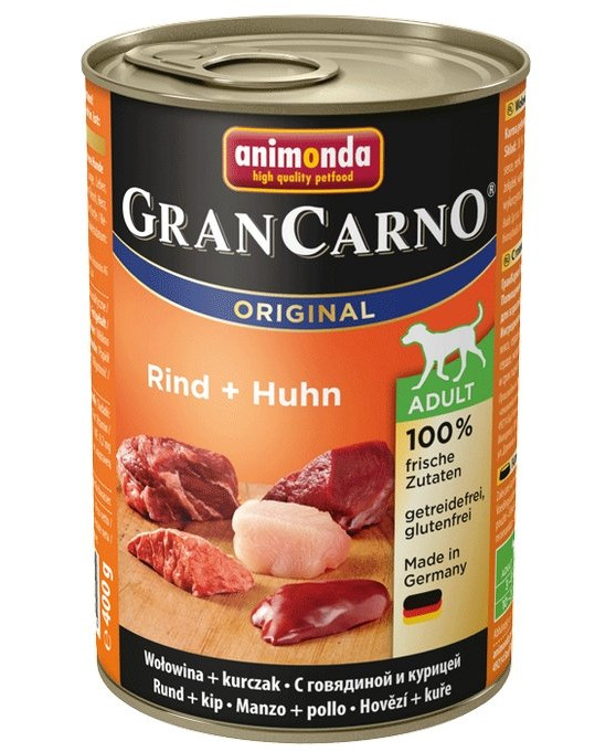 GranCarno Original Adult står för balanserad, välsmakande och hälsosam näring på högsta nivå för vuxna hundar i åldern 1 - 6 år. De utvalda, färska köttingredienserna garanterar den ojämförliga smak som hundar älskar så mycket. GranCarno Original Adult förser vuxna hundar med alla viktiga näringsämnen.