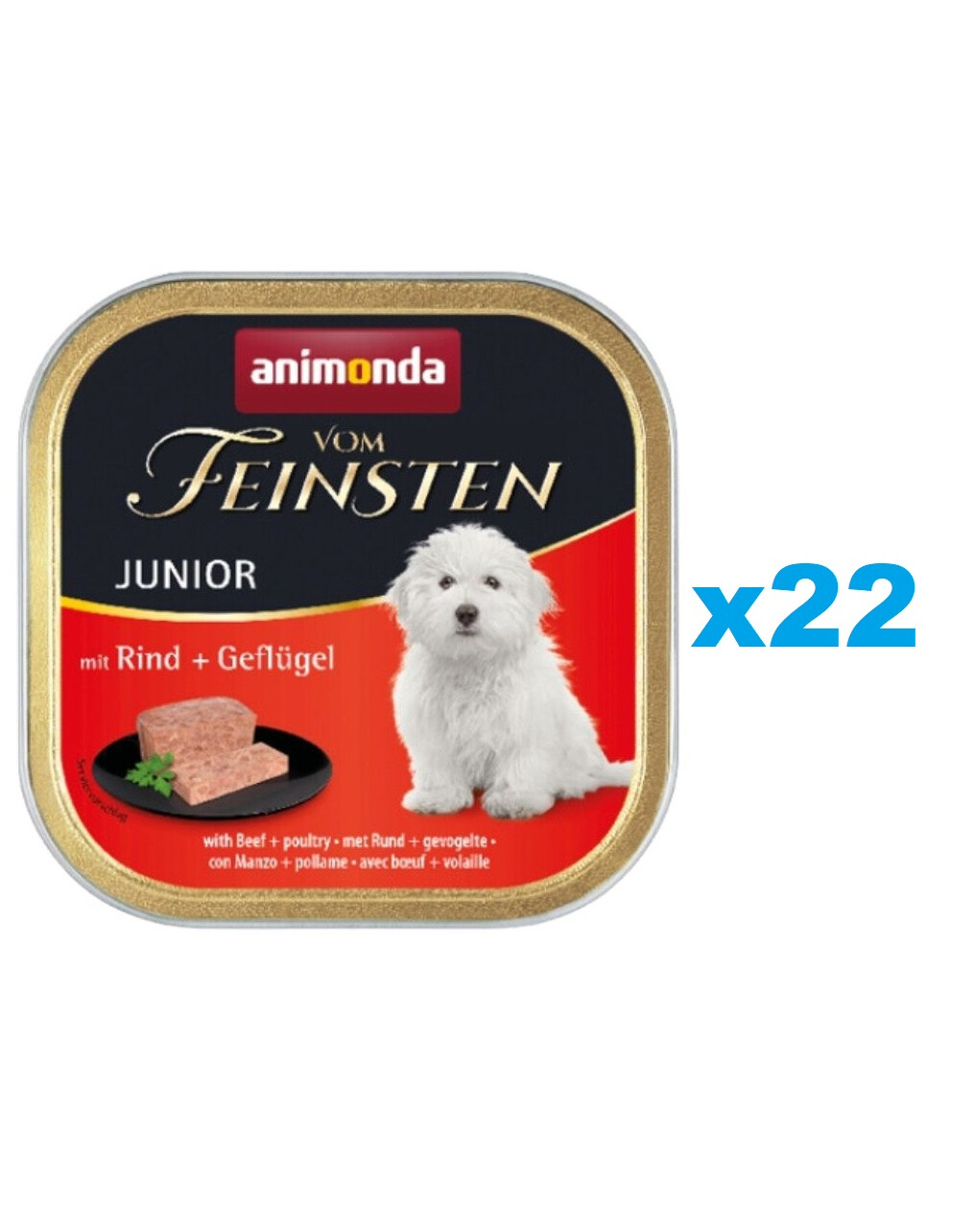 Vom Vom feinsten Junior står för balanserad, välsmakande och hälsosam näring på högsta nivå för växande hundar under deras första levnadsår. De delikata patéerna med sin Vom feinsten-konsistens är speciellt anpassade till näringsbehovet hos växande hundar.