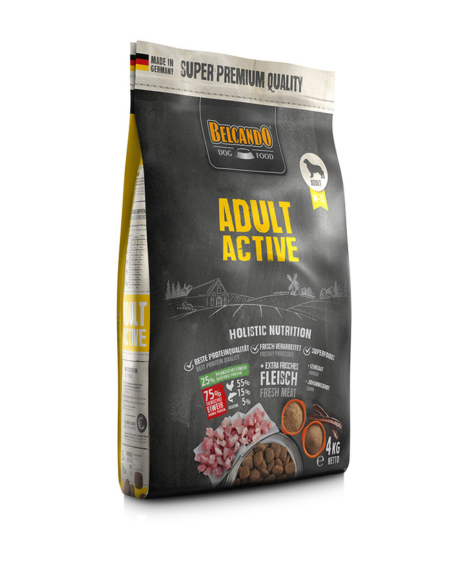 Endast de bästa råvarorna: Lättsmält fjäderfäkött, de värdefulla omega-3-fettsyrorna i linfrö och det mycket hälsosamma johannesbrödsmjölet, som innehåller viktiga tanniner och vitalämnen, gör BELCANDO® Adult Active till ett helfoder för hundar som älskar motion.