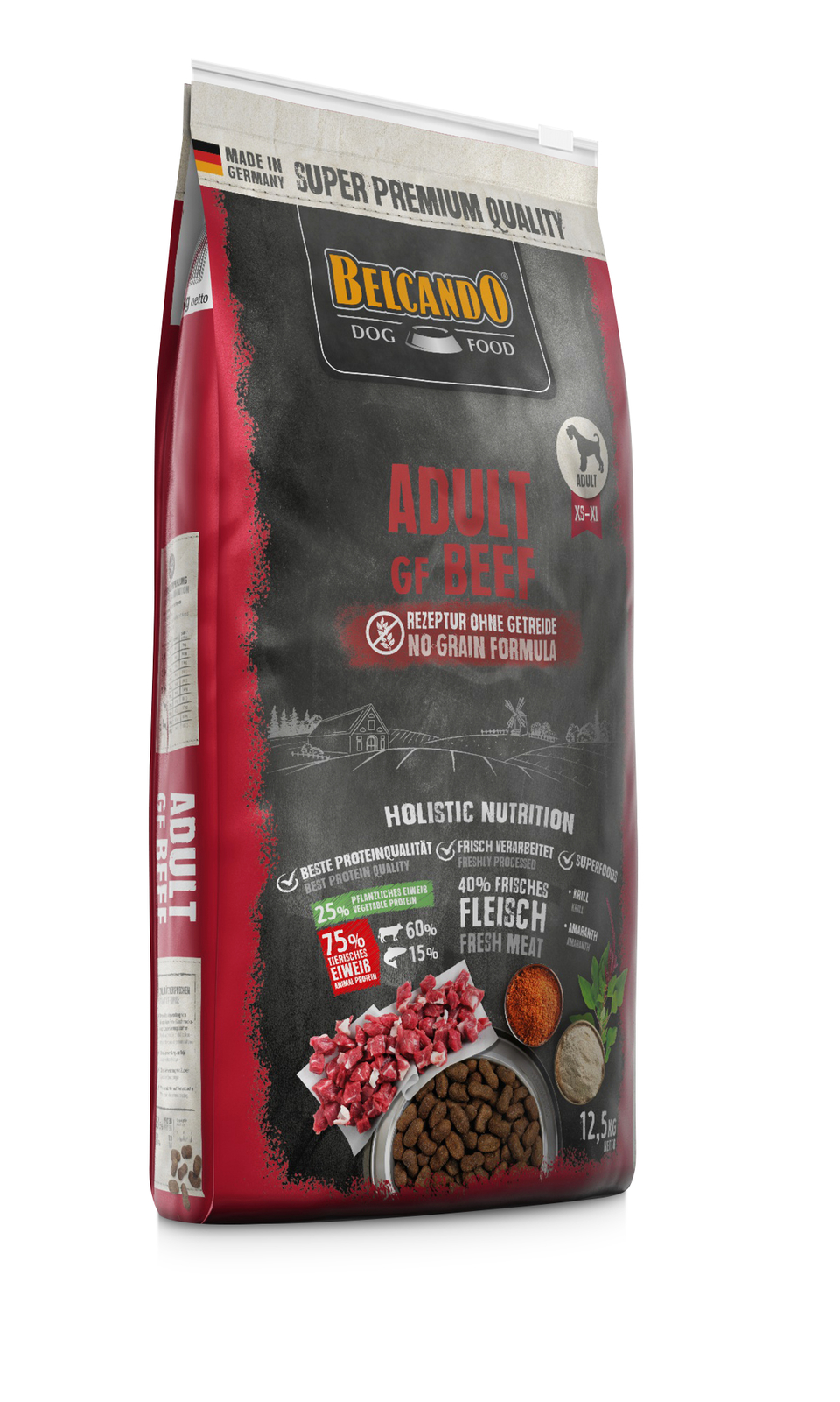 Det perfekta fodret för hundar med gluten- eller spannmålsintolerans som föredrar ett alternativ till fjäderfäkött. I receptet som utvecklats enligt ett holistiskt näringskoncept ersätts spannmålen med högkvalitativ amarant, som har ett betydligt högre innehåll av viktiga näringsämnen (protein, essentiell aminosyra lysin, omättade fettsyror, mineraler, spårämnen). Den höga andelen färskt kött gör också Adult GF Beef till en riktig godbit, även för kräsna hundar. Protein- och fettinnehållet är anpassat till behoven hos vuxna hundar av alla raser med normal aktivitetsnivå.