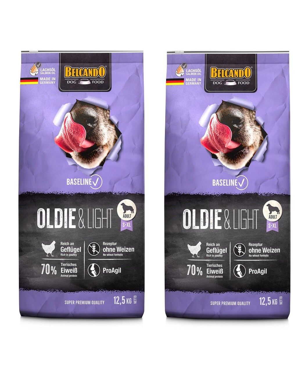 Fjäderfäprotein, torkat (16,5%); ris (15%); majs; foderhavregryn; torkad betmassa, avsockrad; potatisstärkelse; fjäderfäfett; havreskrovsmjöl; mald majs; havsfiskmjöl; gelatin, hydrolyserat (2,5%); johannesbröd, torkat (2. 5%); bryggerijäst, inaktiverad, torkad; ärtfiber; linfrö; laxolja (1%); fjäderfälever, hydrolyserad; dikalciumfosfat; natriumklorid; kaliumklorid; örter, torkade (nässelblad, gentianarot, centaurie, kamomill, fänkål, kummin, mistel, rölleka, björnbärsblad) (0,2%); yucca schidigera