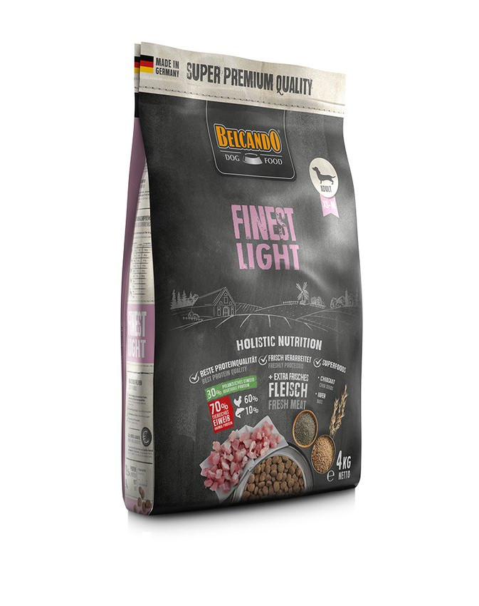 Som en speciell egenskap för att förbättra smaken har BELCANDO® Finest Light försetts med en speciell sås. Genom att försiktigt blanda 3 delar BELCANDO® Finest Light med 1 del varmt vatten (40-50 °C) bildas ett särskilt smakrikt såsskikt över livsmedelspartiklarna. Detta är en speciell delikatess för kräsna hundar. Men även när BELCANDO® Finest Light utfodras torrt kännetecknas det av maximal smak.