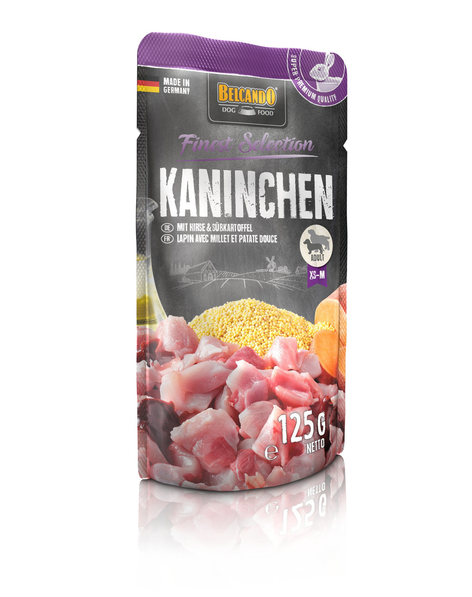 Utmärkta recept i praktiska individuella portioner. Saftigt kött, förädlat med sofistikerade ingredienser, tillagas varsamt i portionspåsen. Kallpressad safflorolja ger viktiga omättade fettsyror. BELCANDO® Finest Selection är exceptionellt välsmakande och lättsmält och passar perfekt för känsliga eller kräsna hundar.