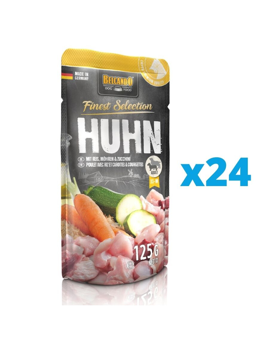 Utmärkta recept i praktiska portionsförpackningar. Saftigt kött, förädlat med sofistikerade ingredienser, tillagas varsamt i portionspåsen. Kallpressad safflorolja ger viktiga omättade fettsyror. BELCANDO® Finest Selection är exceptionellt välsmakande och lättsmält och passar perfekt för känsliga eller kräsna hundar.