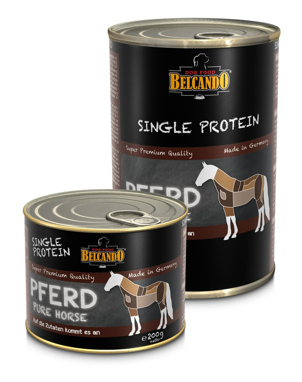 BELCANDO® Single Protein finns i sex utvalda köttvarianter. Inga andra tillsatser ingår. I kombination med fodertillskottet BELCANDO® Mix it GF är Single Protein våtfoder en idealisk proteinkälla för eliminationsdieter, där du kan ta reda på vilka typer av kött ditt husdjur kan vara känsligt för.