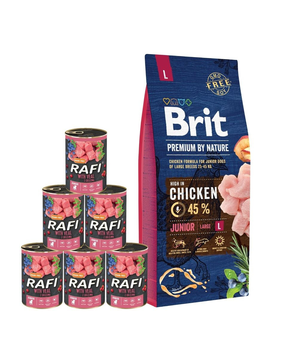 Ett helfoder med kyckling för valpar av storvuxen ras (vuxen hund som väger 25-45 kg) i åldern 1-24 månader.