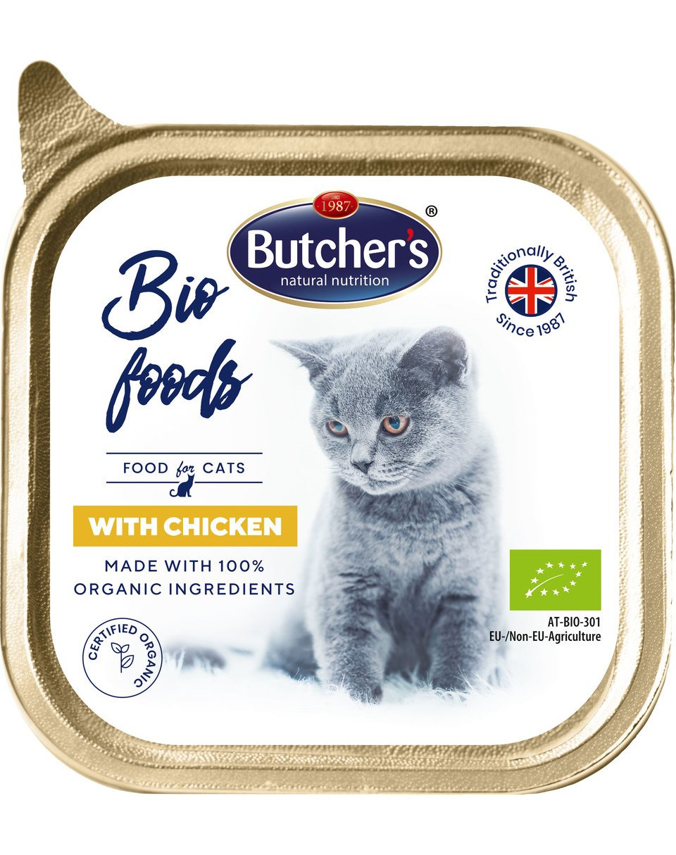 Butcher's Organic Foods är ett helfoder för vuxna katter.