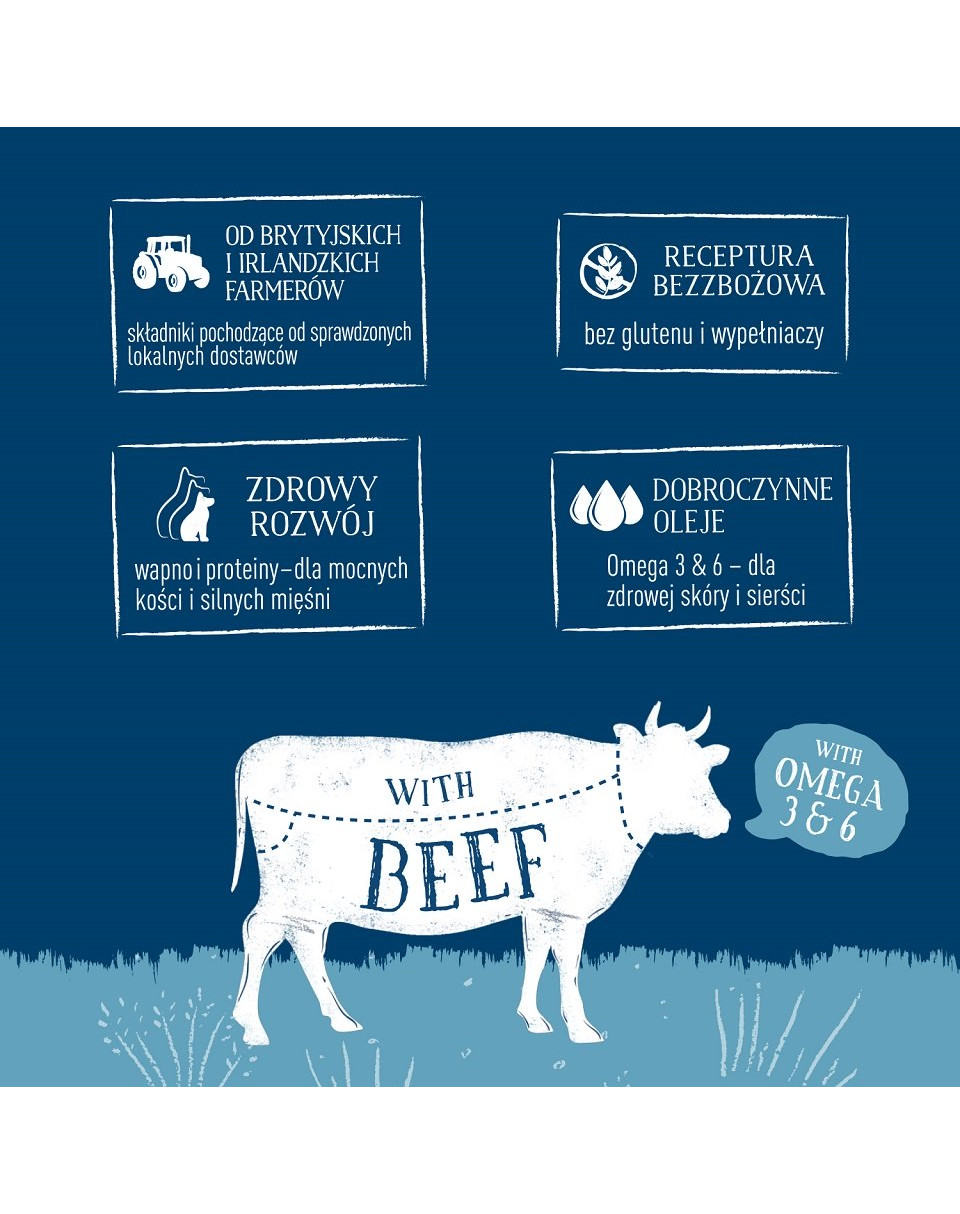 Komplett valpfoder i form av bitar med nötkött i en smakrik gelé. Noggrant sammansatt för att ge din unga hund alla de näringsämnen den behöver för en sund utveckling. De nyttiga laxoljorna omega-3 och omega-6 som ingår i produkten stöder immunförsvaret och de kognitiva funktionerna.