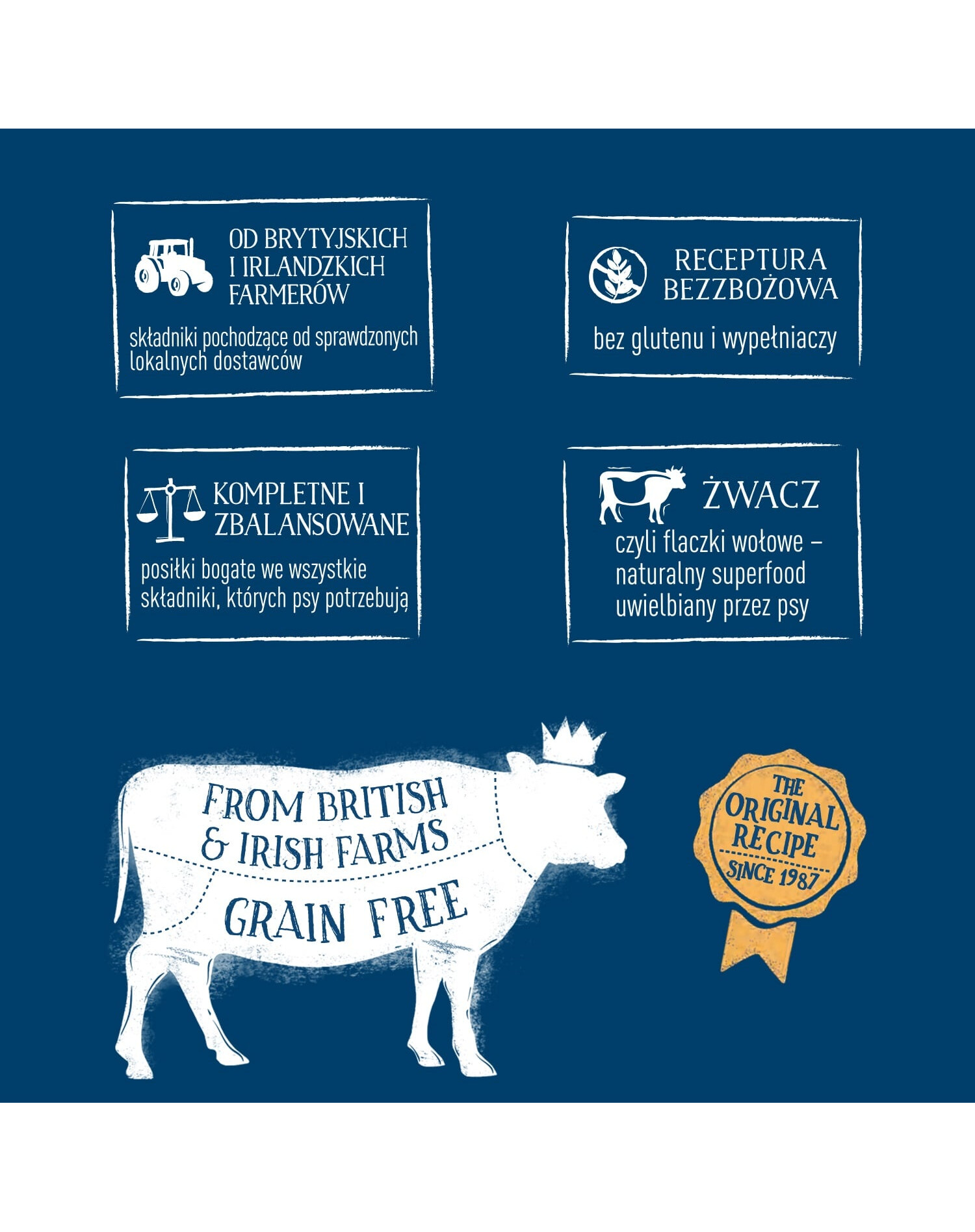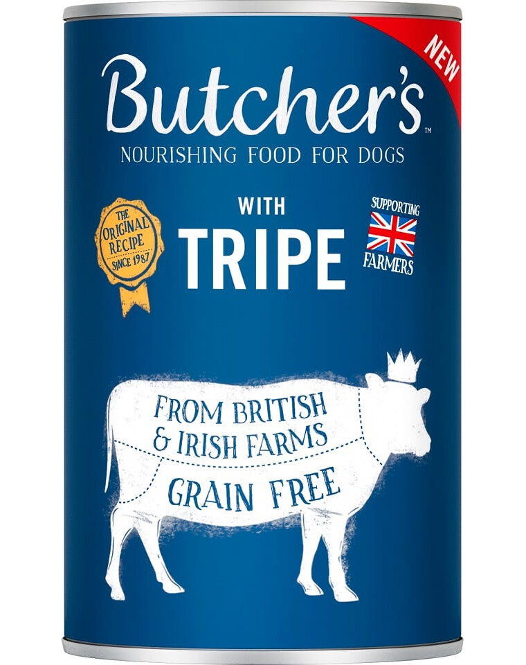 Butcher's Original Tripe är ett helfoder berikat med nötköttsvom, utformat för att tillgodose husdjurens dagliga behov. Alla produkter är tillverkade av ingredienser från Nature och förpackas i miljövänliga förpackningar.