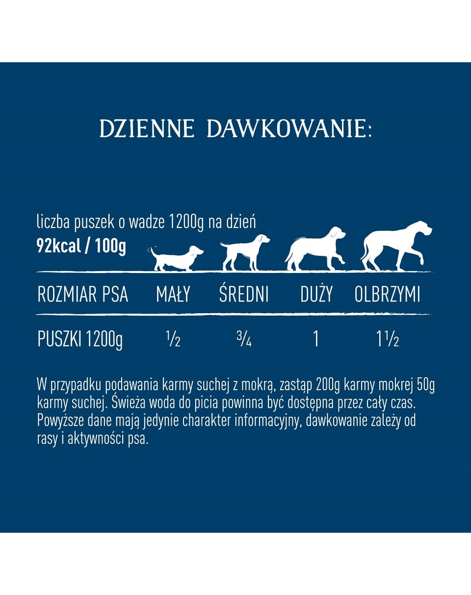Om du utfodrar torrfoder med våtfoder, ersätt 200 g våtfoder med 50 g torrfoder. Färskt dricksvatten ska alltid finnas tillgängligt. Siffrorna på motstående sida är endast för information, doseringen beror på ras och aktivitetsnivå.