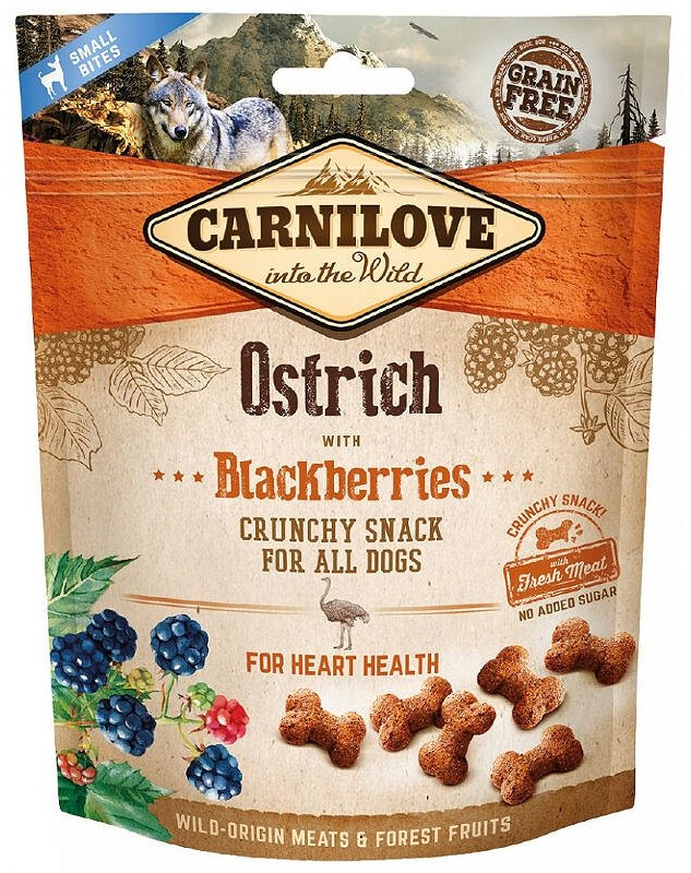 Köttbiskvier med exceptionellt strutskött som har en bra aminosyraprofil. De innehåller upp till 50 % strutskött, resten är frukt och grönsaker.