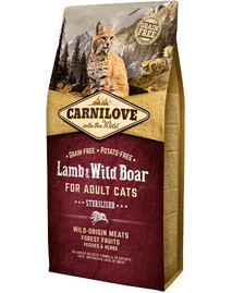 Ett avancerat foderkoncept som bygger på den mat som djuret skulle få i frihet i sin egen Nature miljö. Carnilove erbjuder ett brett utbud av utvalda vilda köttarter som ren, anka, fasan, kalkon, lamm, vildsvin och lax. Detta gör att Carnilove kattmat innehåller en stor andel av den föda som förekommer i dess naturliga miljö och säkerställer därmed intaget av viktiga aminosyror.