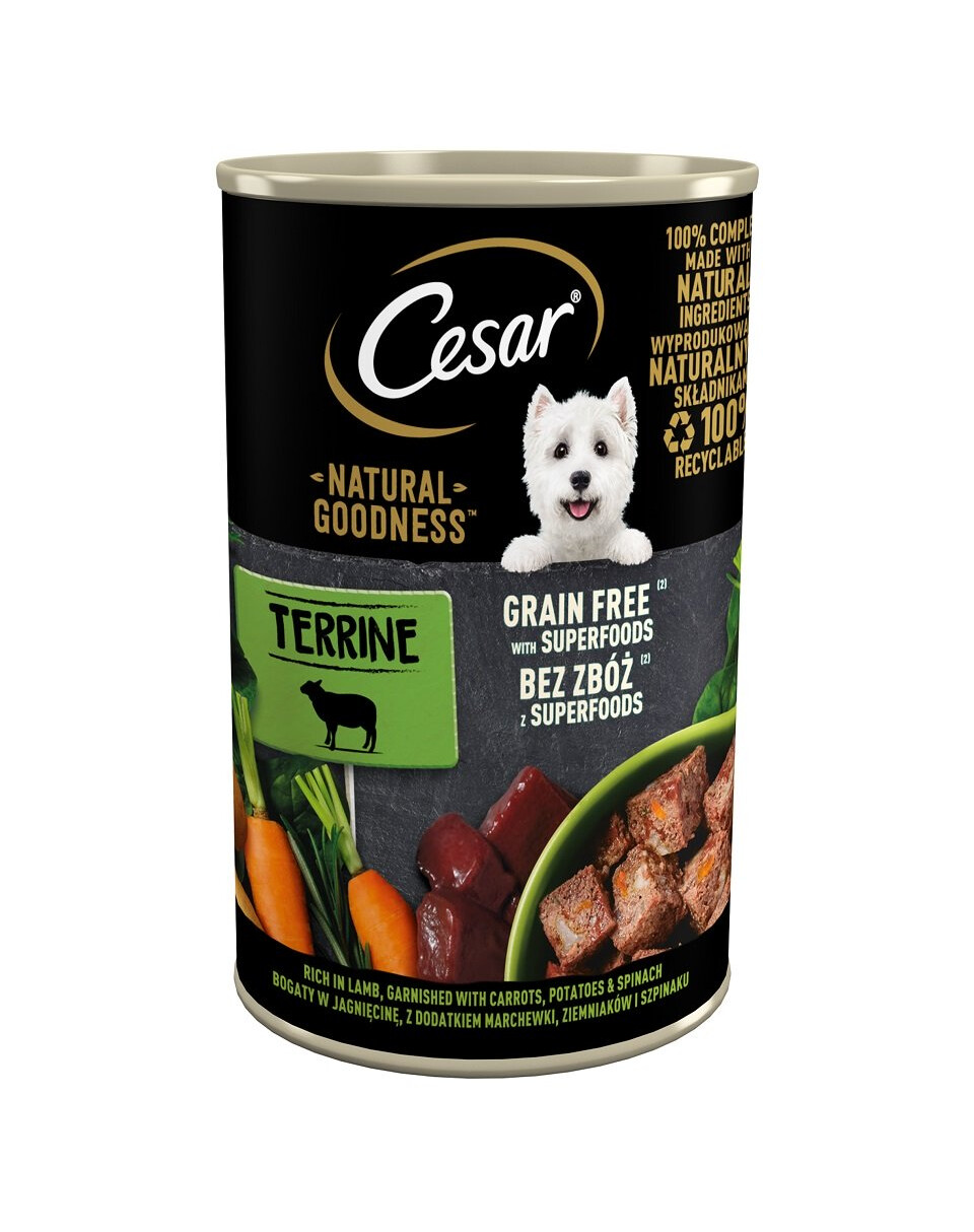 Det lammrika fodret från Cesar Natural Goodness har tillagats enligt ett noggrant utvalt spannmålsfritt recept och ger hunden allt den behöver varje dag. Den här maträtten är perfekt för en färsk och utsökt måltid varje dag. Du kan servera detta foder tillsammans med torrfoder eller som en separat maträtt. Fodret är rikt på lammkött samt morötter, potatis och spenat - spenat är en källa till järn och kalium och morötter är en källa till antioxidanter. Cesar Natural Goodness hundfoder har framställts på ett sätt som bevarar de naturliga näringsvärdena och den utsökta smaken. Nutritionister och veterinärer från WALTHAM Institute of Animal Science har deltagit i utvecklingen.