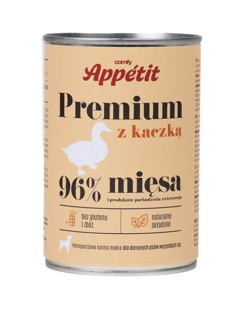 Comfy Appetit Premium är ett komplett våtfoder för vuxna hundar baserat på Nature-ingredienser. Ditt husdjur kommer att älska denna utvalda köttblandning. Fodret innehåller 96% ingredienser av kött, fisk och animaliskt ursprung och är rikt på vitaminer och mineraler.