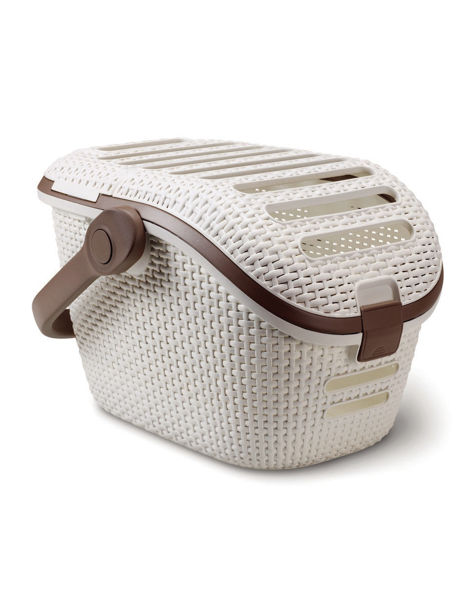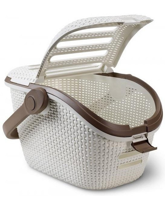 Med denna transportlåda från Curver kan du ge ditt husdjur en trevlig bilfärd! Den här rymliga transportlådan håller ditt husdjur säkert när du reser. Den kan fästas på bilsätet med säkerhetsbältet. Transportlådan har en snygg design i rotting med flera smala öppningar som säkerställer god luftcirkulation. Locket har större ventilationsöppningar som också kan användas för att belöna ditt husdjur med lite godis. Djurhållaren är tillverkad av högkvalitativ plast och är byggd för att hålla en livstid för din lilla vän. Det bekväma handtaget gör att du kan hålla lådan stadigt, även om ditt husdjur blir rastlöst. Den täta stängningen med ett lås säkerställer att ditt husdjur inte har någon chans att rymma.
