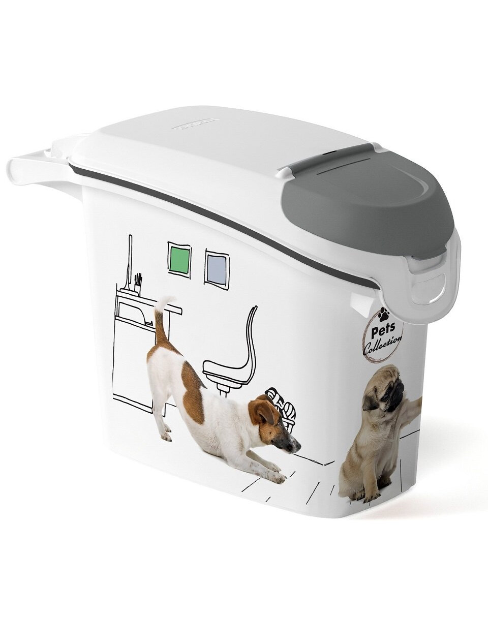 Tack vare en speciell tätning på locket kan lukt inte tränga ut och maten håller sig fräsch längre. En liten klaff på locket gör det enkelt att ta ut maten, vilket är särskilt praktiskt när man vill mäta upp rätt antal husdjur, och innermåtten anger hälften respektive en fjärdedel av behållarens kapacitet. Den stora öppningen gör behållaren lätt att fylla, så att du snabbt och enkelt kan fylla på matförrådet. Tack vare det praktiska handtaget är behållaren lätt att transportera, så att du enkelt kan flytta den till olika platser i huset.