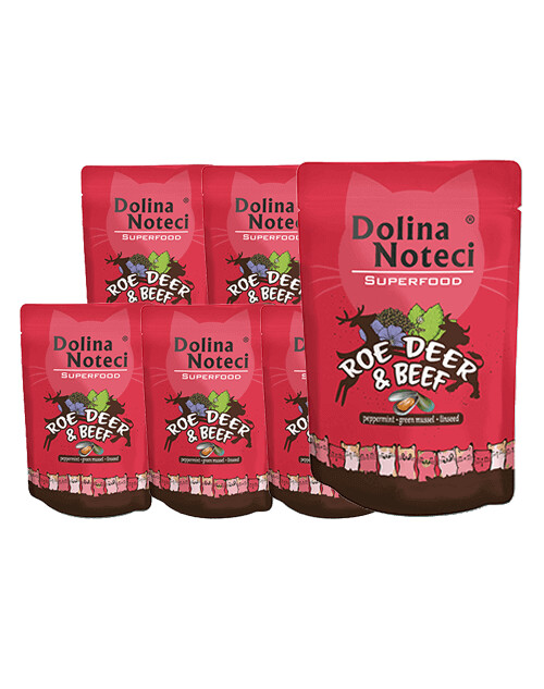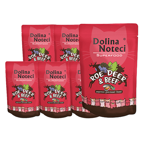 Komplett våtfoder för katter med hjortkött och nötkött.