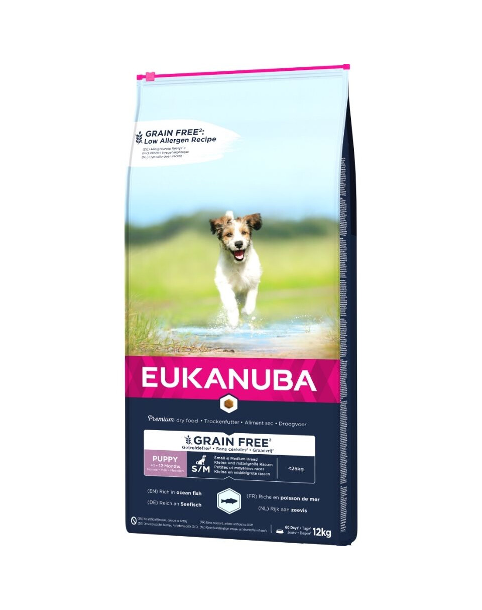 EUKANUBA Grain Free är ett glutenfritt valpfoder för små och medelstora raser.