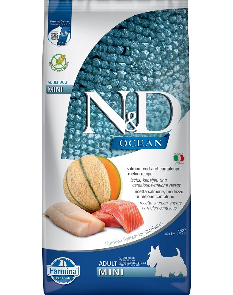 Maten innehåller lax, torsk, pumpa och cantaloupemelon. Huvudingredienserna i fodret är lax och torsk, som är utmärkta källor till animaliskt protein. Fisk är en källa till fettsyror som har en antiinflammatorisk effekt, stärker huden och återfuktar pälsen. Fiskolja ger ett stort tillskott av omättade omega-3-fettsyror med antiinflammatoriska egenskaper. Blåbär kännetecknas av sin höga antioxidativa aktivitet och höga polyfenolhalt, vilket kompletterar kosten perfekt för hundar med ökad fysisk aktivitet. Den höga andelen frukt och grönsaker bidrar till ett högt innehåll av vitaminer, näringsämnen och fibrer, vilket skapar rätt förutsättningar för att utveckla och bibehålla hundens kondition.
