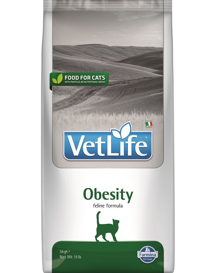 För minskning av fetma. Farmina Vet Life Obesity är ett komplett dietfoder för vuxna katter för att minska övervikt