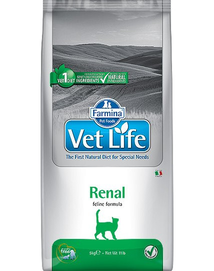 För kronisk eller akut njurinsufficiens; för behandling av kongestiv hjärtsvikt. Farmina Vet Life Renal är ett komplett dietfoder för katter för att stödja njurfunktionen vid kronisk eller akut njurinsufficiens. Detta dietfoder innehåller en låg koncentration av fosfor och ett reducerat proteininnehåll.