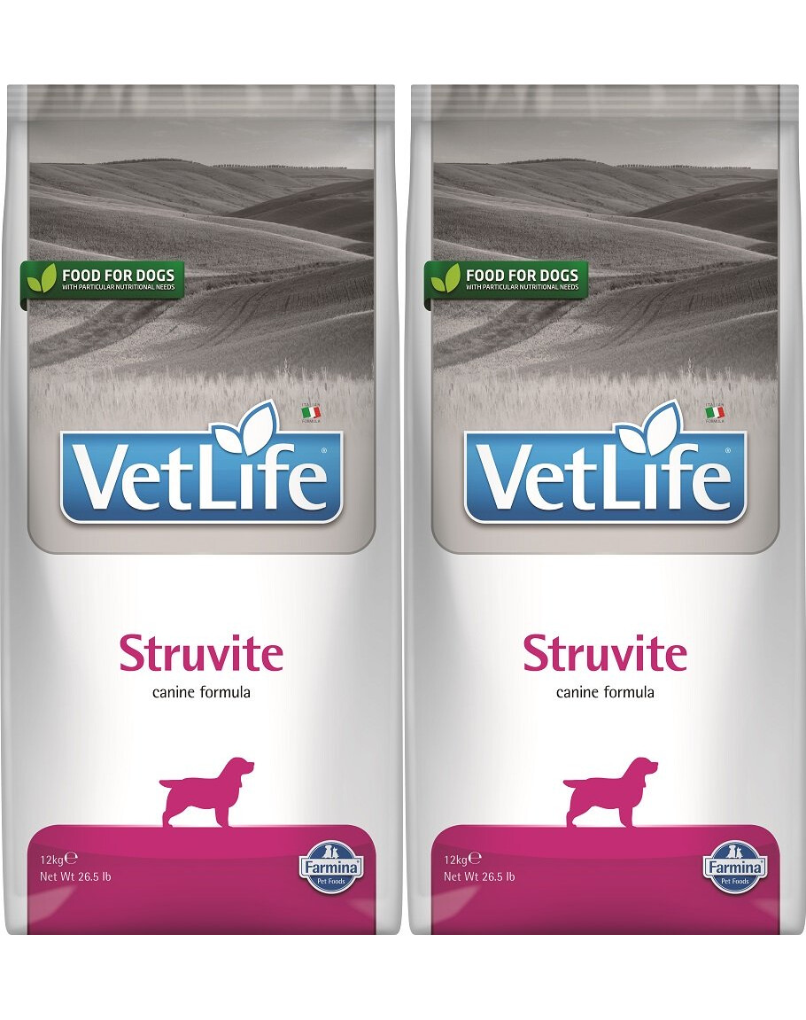 Lös upp struvitstenar och minska återfall av struvitstenar. Farmina Vet Life Struvite är ett dietfoder för vuxna hundar för att lösa upp struvitstenar och minska återfall av struvitstenar
