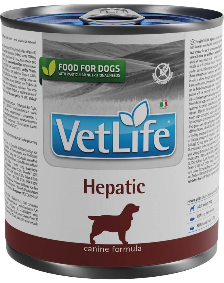 Farmina Vet Life Natural Diet Dog Hepatic är ett komplett dietfoder för hundar för att stödja leverfunktionen vid kronisk leversvikt och för att minska leverkoppar. Måttligt proteininnehåll, utvalt och mycket lättsmält.