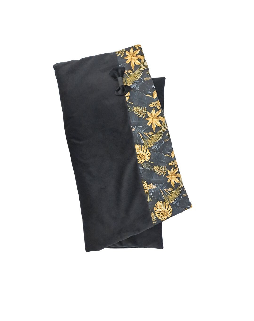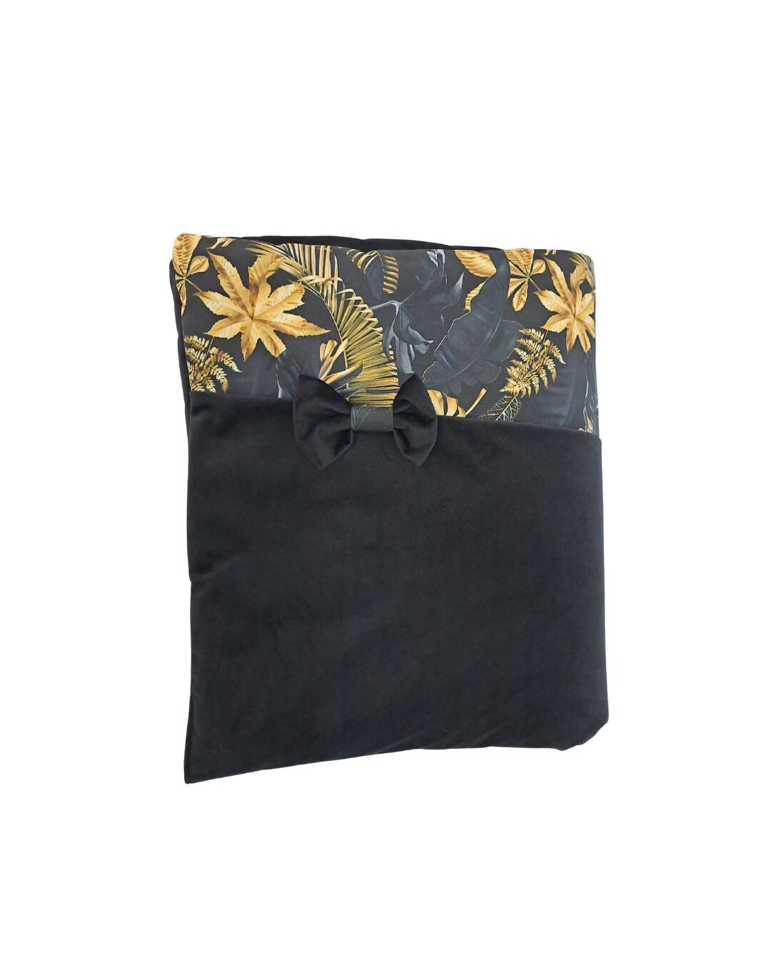 .Filten är sydd av ett bekvämt och mjukt material. Filten har ett elegant bladguldtryck. Filten har en påsydd rosett.