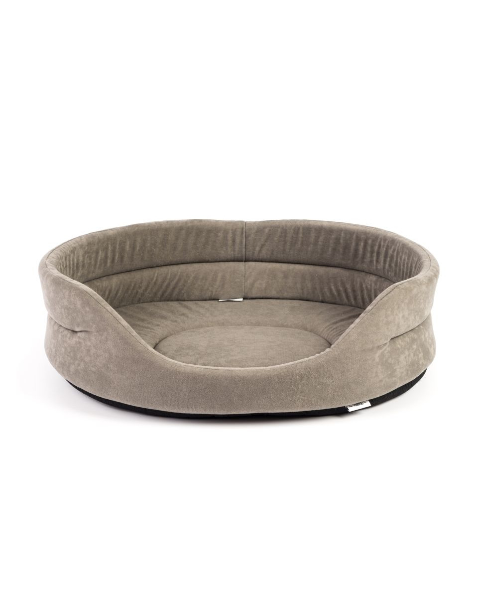 Den är tillverkad av starkt, hållbart och djursäkert material som garanterar att sängen kommer att hålla länge. Det grå sammetmaterialet är imponerande och mycket estetiskt. De förstyvade sidorna garanterar sängens stabilitet och ger stöd åt ditt husdjur. Så att din hund kan slappna av och njuta av tillvaron. Sängen är ordentligt formad och har en bred ingång så att din hund kan komma in bekvämt.