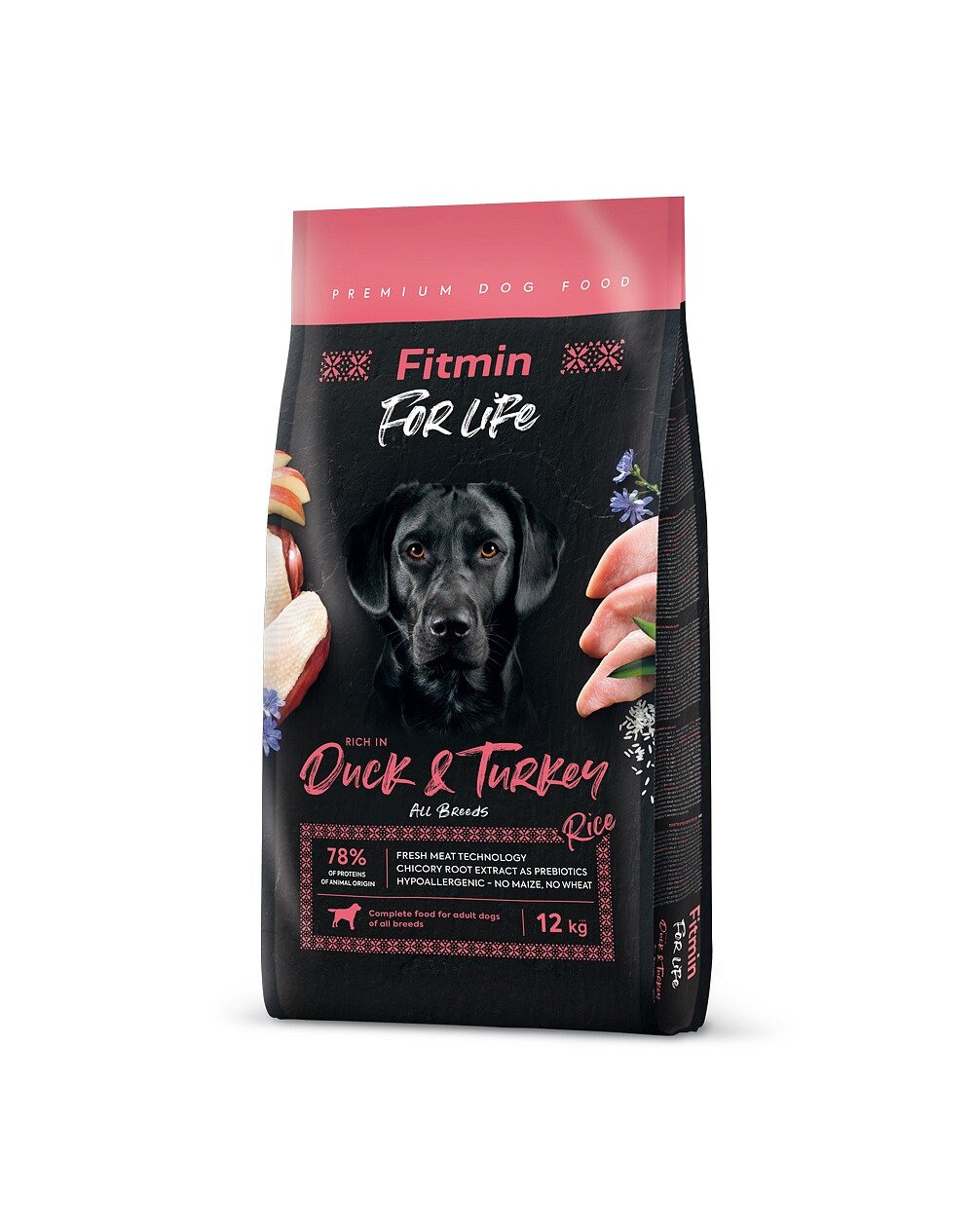 Ett foder baserat på färskt fjäderfäkött från kalkon och anka. Denna köttkombination är mör, näringsrik och mycket Appetitlig för hundar. Tillsatsen i fodret är vitt ris. Receptet innehåller ingen tillsatt majs eller vete. Yucca- och cikoriaextrakt har en positiv effekt på matsmältningen, minskar flatulens och den obehagliga lukten av hundavföring.