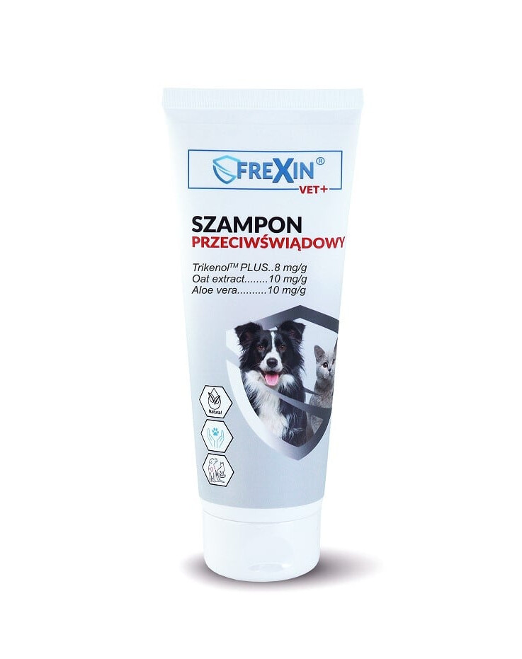 Schampot innehåller aloe vera juice och havreextrakt som intensivt återfuktar och lindrar irritation, vilket minskar klåda. Trikenol Plus har antiinflammatoriska egenskaper som hjälper till att begränsa klåda och minska risken för klösning. Den milda formulan rengör huden noggrant utan att skada dess naturliga skyddsbarriär. Regelbunden användning stödjer hudens regenerering och återställer dess friska utseende och komfort. Schampot har en mild doft och en lätt konsistens, vilket underlättar applicering och sköljning. Utmärkt för djur med tendens till irritation och överkänslighet i huden.