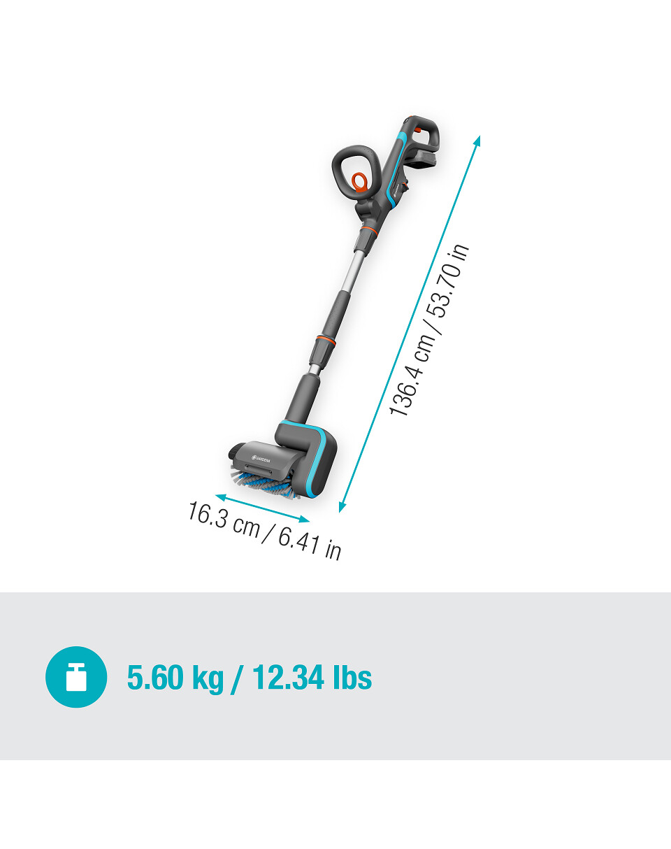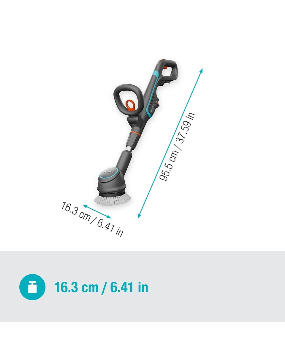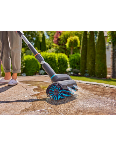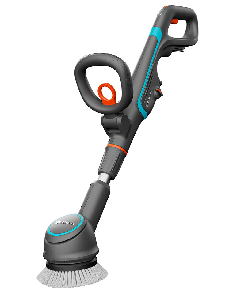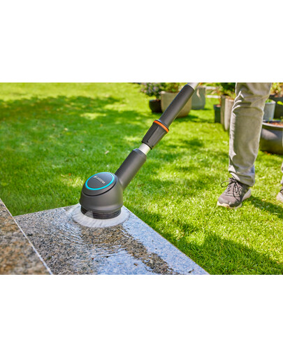 Universell batteridriven borste GARDENA AquaBrush är en mångsidig lösning för rengöring av olika utomhusytor.