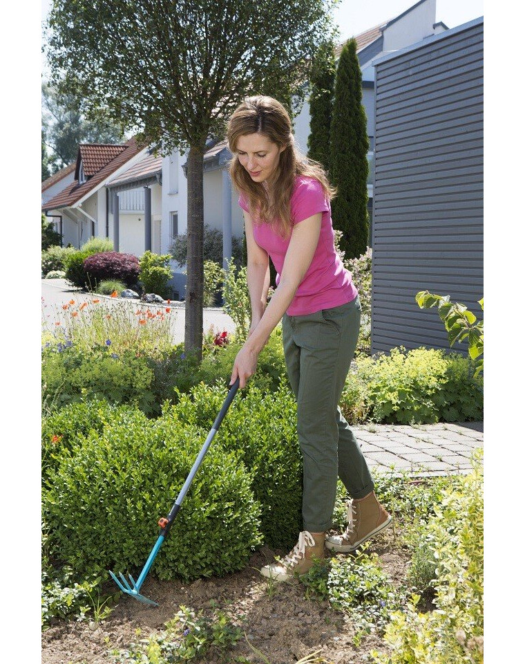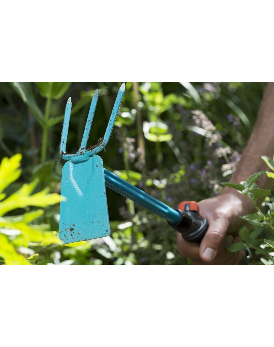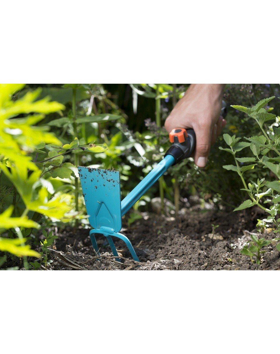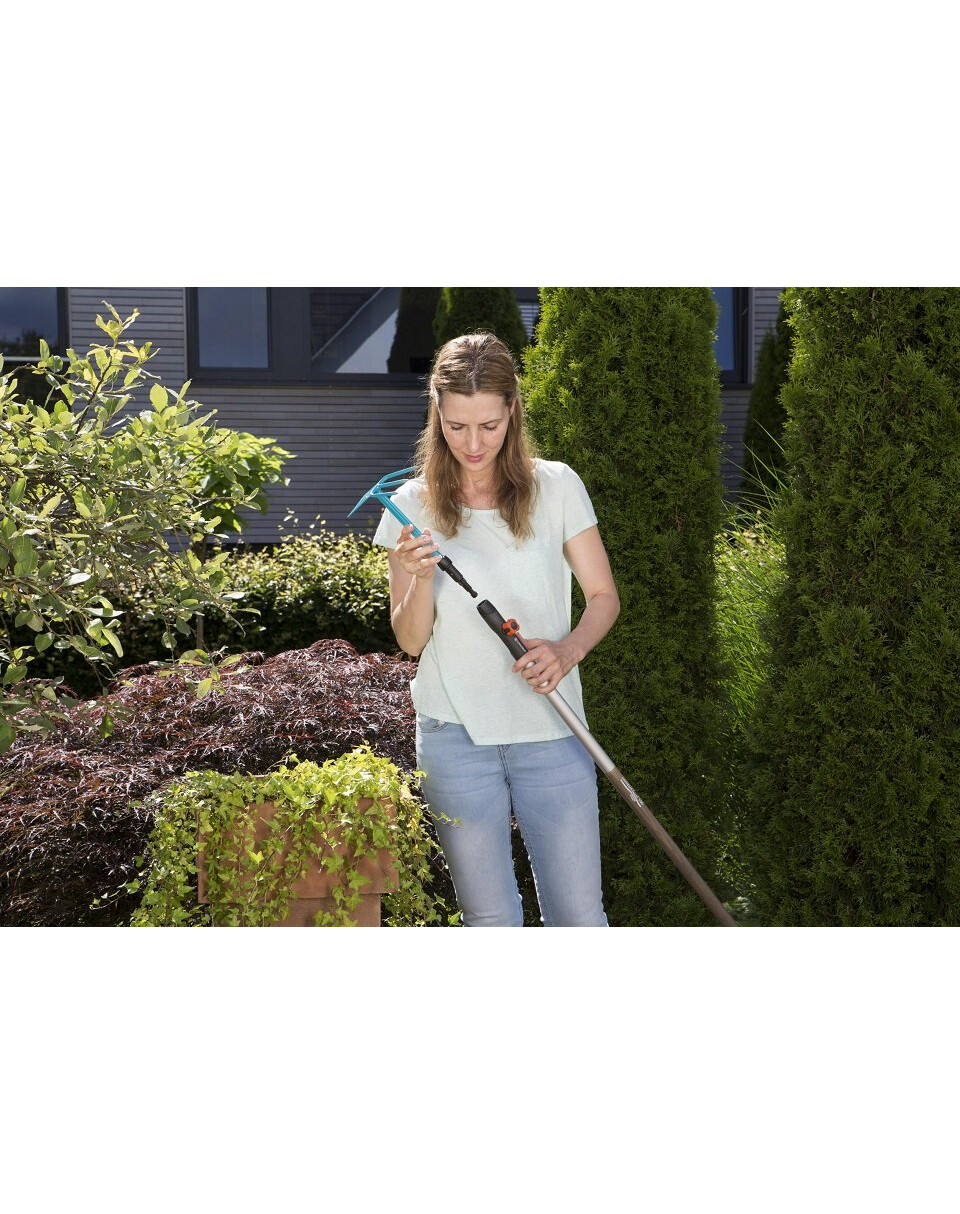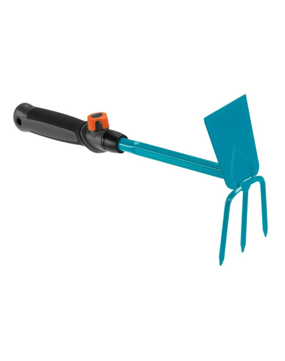 Combisystem GARDENA – enkel motycka för luckring, luftning och ogräsrensning. GARDENA kombisystem möjliggör flexibel användning tack vare utbytbara verktyg. Motyckan är kompatibel med alla handtag i GARDENA kombisystem och kan enkelt fästas på handtaget. För att arbeta bekvämt och utan att böja sig, behöver du bara ta bort handtaget och ersätta det med ett kombisystemhandtag. Combisystem – förlängningshandtag (art. nr 8900-20) är perfekt för att förlänga handverktyg. En säker anslutning mellan motyckan och handtaget säkerställer bekväm användning i alla situationer. Ergonomiskt utformad handtag med mjuka inslag garanterar användarkomfort, och dess rundningar förhindrar att verktyget glider. Den praktiska enkla motyckan har tre tänder på ena sidan och ett rakt blad på den andra. Arbetsbredden är 6,5 cm. Tack vare högkvalitativt härdat stål belagt med plast är den enkla motyckan motståndskraftig mot korrosion och exceptionellt hållbar. Combisystem – flexibel verktygshängare möjliggör bekväm förvaring av motyckan.