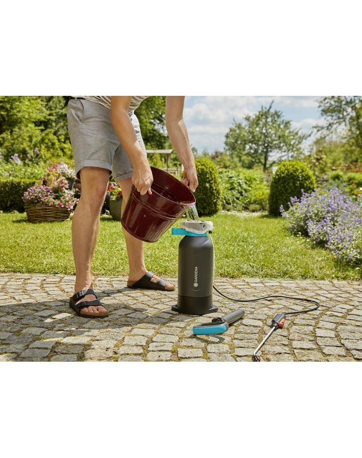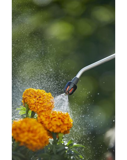 Med den 5-liters Comfort tryckspruta från GARDENA är du perfekt utrustad för olika uppgifter när du tar hand om växter i trädgården. Använd den för att behandla dina blommor, buskar och träd på ett målinriktat sätt - oavsett om det gäller bevattning, gödning eller växtskydd, kemiskt eller biologiskt. Innan du börjar bygger du upp trycket i den 5 liter stora behållaren genom att föra det praktiska D-handtaget upp och ner. Eftersom sprayflaskan också har ergonomiska fotsteg har du alltid ett stadigt fotfäste när du utför den här rörelsen. Apparaten levereras med recept och tillhörande nylonfilter för att göra din egen ekologiska brygd. Med hjälp av filtret kan man t.ex. sila ett nässelavkok mot skadedjursangrepp som t.ex. bladlöss. Påfyllningsprocessen förenklas också avsevärt tack vare den 12 cm stora trattöppningen. När allt är klart för sprutning kan du använda den ergonomiskt placerade axelremmen, som gör det bekvämt att bära sprutan. För att få reda på hur mycket vätska som finns kvar i tanken är det bara att ta en titt på den visuella remsan. Sprutlansen ligger bekvämt i handen och har en låsfunktion, vilket innebär att Comfort 5-liters tryckspruta lever upp till sitt namn även i detta avseende. Med piercingstrålen och spraystrålen kan du välja mellan två olika sprutmönster för att bespruta dina växter på ett flexibelt sätt.