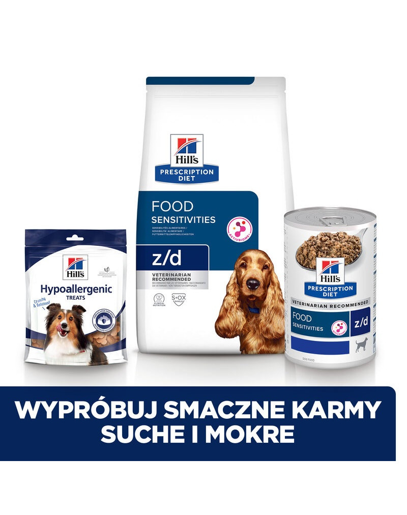 Hill's Prescription Diet z/d hundfoder är ett komplett dietfoder utformat för att minska ingrediens- och näringsämnesintolerans hos vuxna hundar. Detta dietfoder innehåller en utvald kolhydratkälla och en hydrolyserad proteinkälla.
