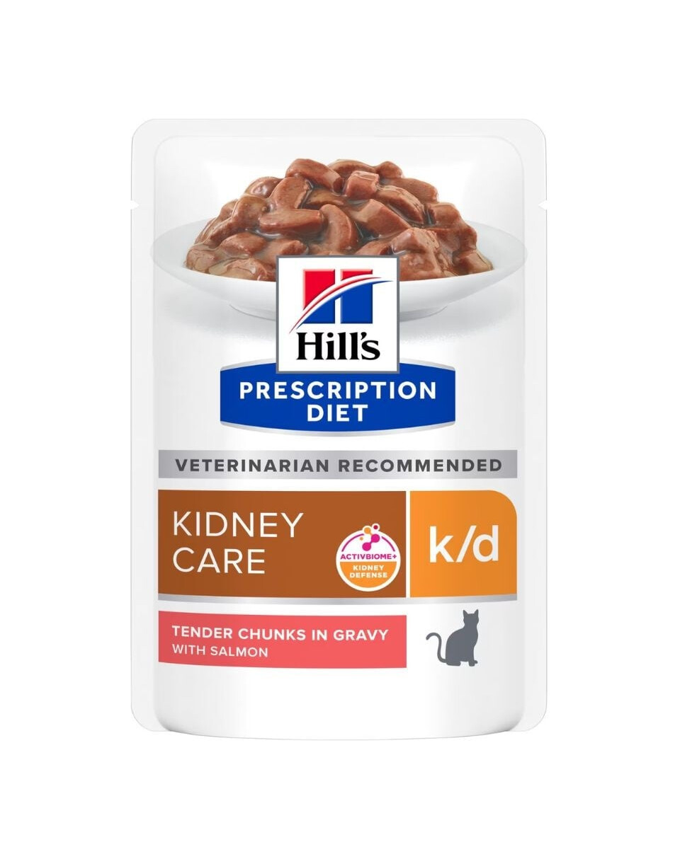 Komplett dietmat HILL'S Prescription Diet Feline k/d Kidney Care som stödjer njurfunktionen hos vuxna katter med kronisk eller cyklisk njursvikt. Denna mat har lågt fosforinnehåll och begränsad mängd högkvalitativt protein.