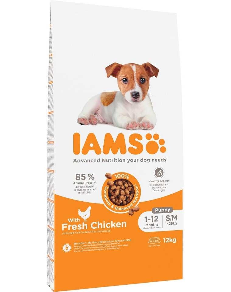 IAMS Puppy Junior Small Medium Chicken är 100% komplett och balanserad mat för valpar.