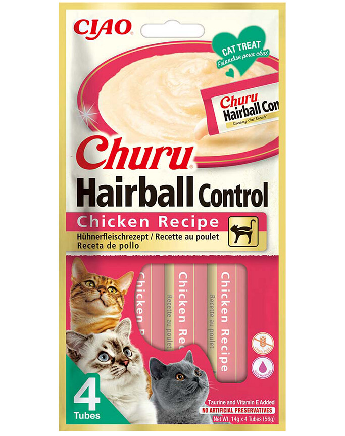 Churu Hairball Control är en nyhet i den bästsäljande serien av såser kända för sin sammetslena konsistens och höga fuktinnehåll. Rik på olöslig växtfiber och chitosan, hjälper den till att bevara mag-tarmkanalens hälsa och bekämpa hårbollar. Den innehåller också taurin, en viktig aminosyra som är nödvändig för katter för att många organ ska fungera korrekt.