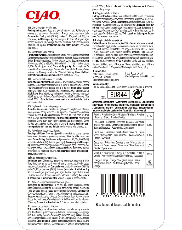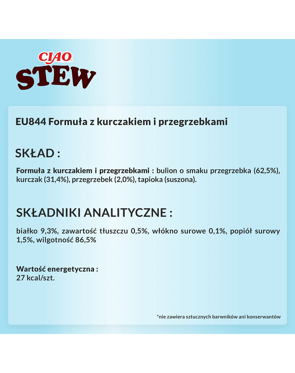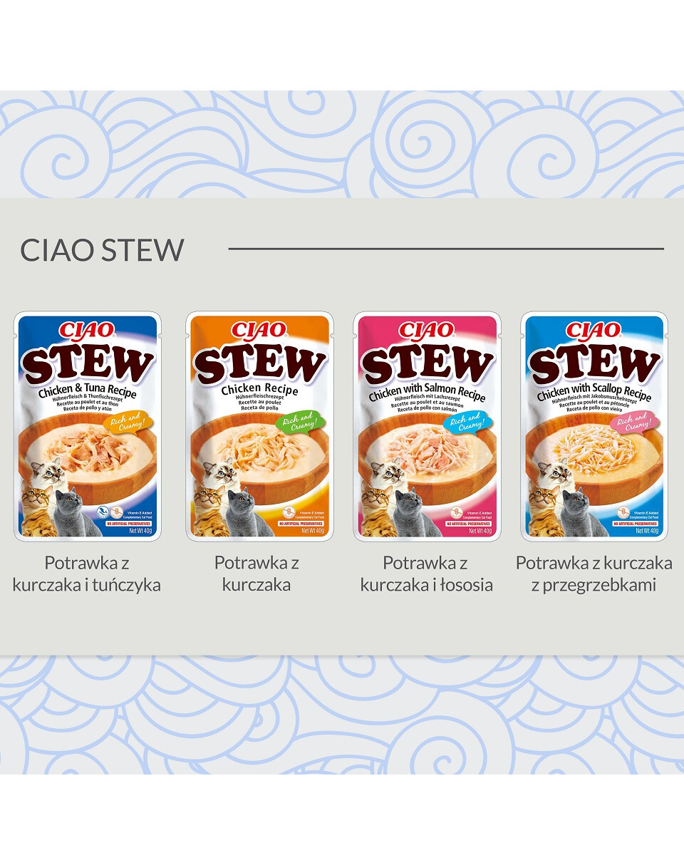 INABA CIAO Stew är ett komplementärt foder för katter med kyckling och kammusslor i sås