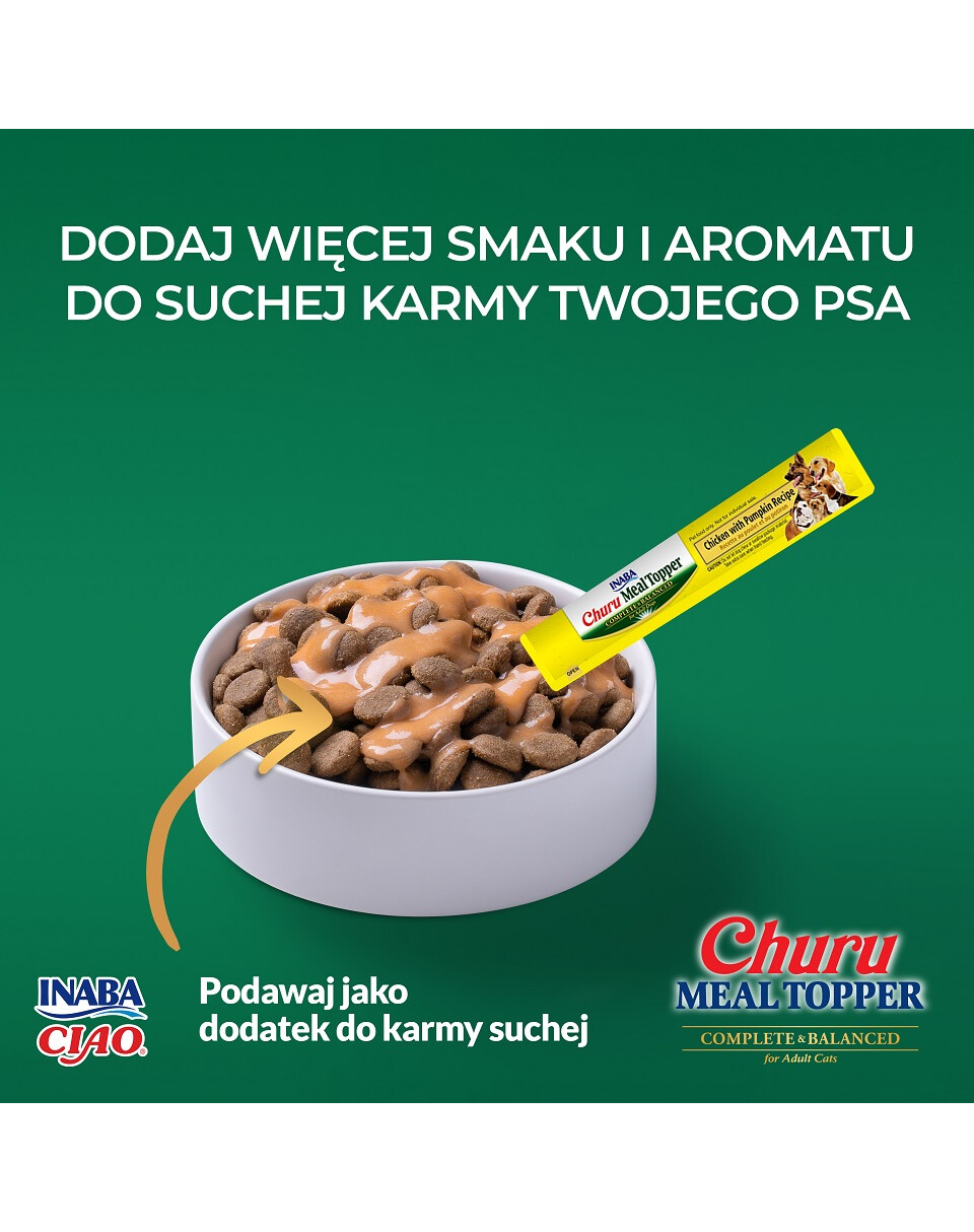 Precis som andra produkter i Inaba-portföljen består Meat Topper-linjen enbart av högkvalitativa ingredienser, inklusive djupvattentuna och frigående kyckling. Dessa produkter är låga i kalorier, innehåller inga spannmål och har en hög fuktighetsnivå.