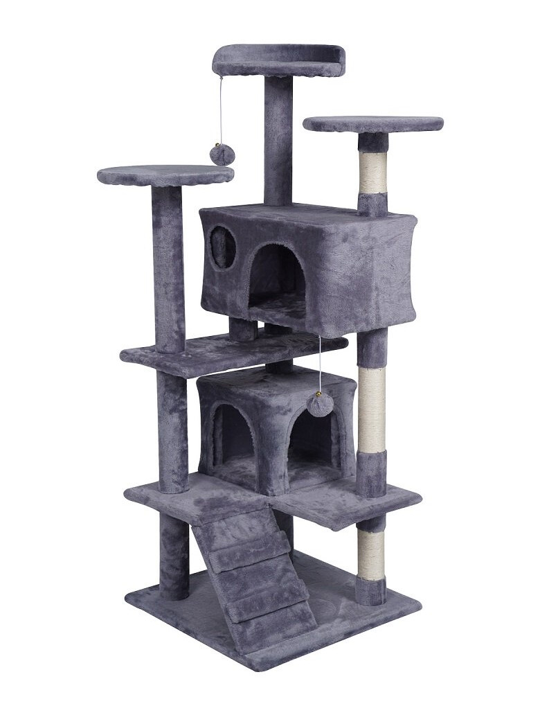 .Passar för mer än en katt i huset. Klösbrädan har två stora hus och 6 plattformar för att sitta eller vila.