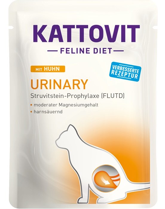 Kattovit Feline Diet - Urinary har utvecklats enligt de senaste vetenskapliga rönen. För att förebygga urinsten (Feline lower urinary tract disease - FLUTD) har fodrets sammansättning utvecklats så att pH-värdet i kattens urin ligger under 6,5. Kattovit Urinary har urinförsurande egenskaper på grund av DL-metionin och ammoniumklorid och en låg magnesiumhalt. Hög smältbarhet och hög energitäthet i torrfodret är viktigt för ytterligare förebyggande åtgärder.