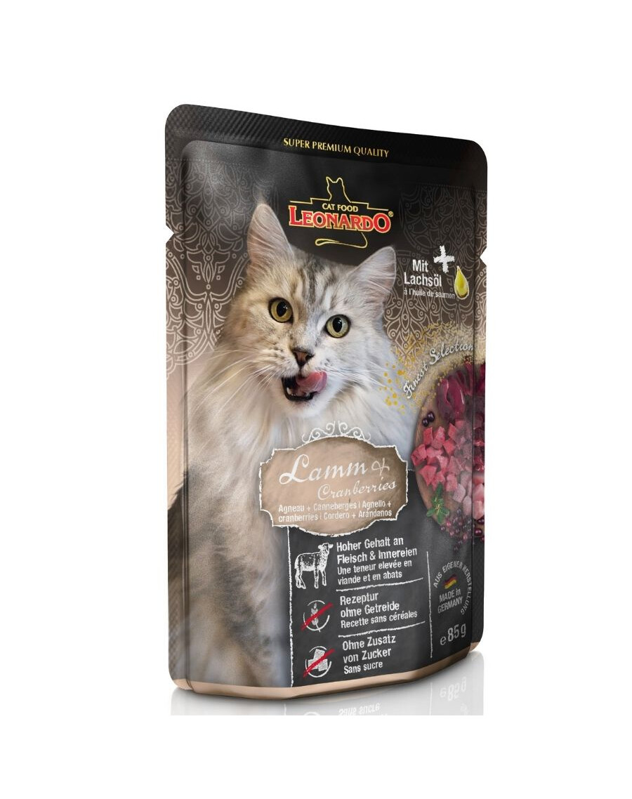 Leonardo Finest Selection är mat i praktiska individuella portioner. De innehåller försiktigt tillagat, saftigt kött med raffinerade ingredienser. Tillsatsen av laxolja förbättrar tillståndet hos kattens hud och päls. Våtfodret är perfekt som ett komplement till Leonardos torrfoder.