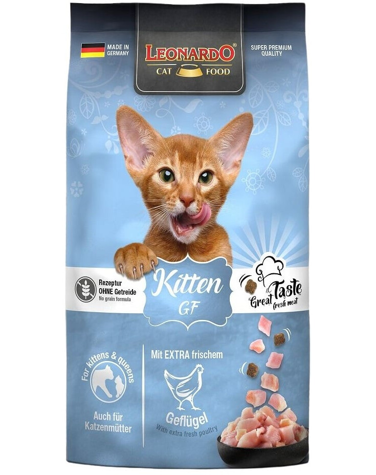 Många kattägare föredrar spannmålsfria formler när de väljer mat för sin kattunge. Därför använder LEONARDO Kitten Grain Free amarathus som ett värdefullt glutenfritt alternativ till spannmål. Makrill och färsk fågel ger småttingarna en utmärkt smak. Receptet kompletteras med andra utvalda ingredienser, såsom marint zooplankton och chiafrön som naturliga källor till viktiga ämnen, såsom omega-3-fettsyror. Våra essentiella ingredienser ger en optimal start på kattens liv: STAY-Clean™* stödjer tandvården, och ProVital stärker immunförsvaret. *STAY-Clean™ är ett registrerat varumärke av DSM Nutritional Products AG.