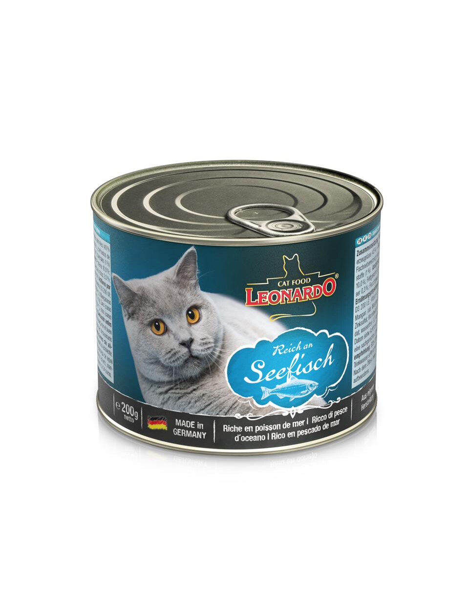 Kött och animaliska biprodukter (40 % + köttbuljong 34 %); fisk och fiskbiprodukter (25 % havsfisk); mineraler (0,5 %); Äggskal, torkade (0,5 %)